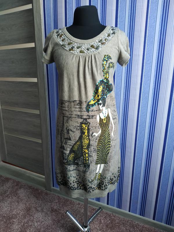 Красива сукня плаття в принт з декором бісер паєтки + нарукавники