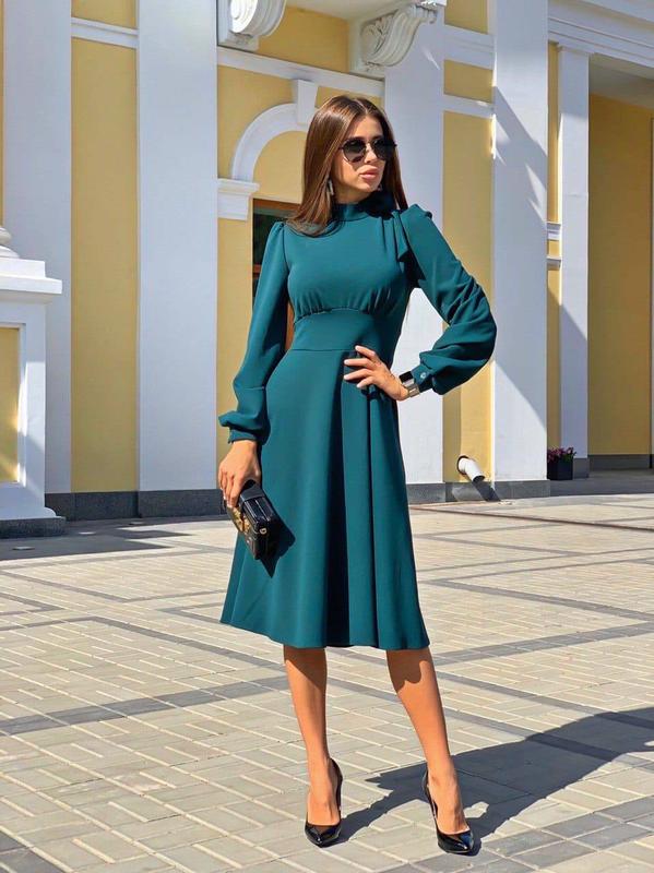 Шикарне плаття з об'ємними рукавами в улюбленій довжині міді❤️ ▫️Розмір С/М ✂️довжина 100см ▫️Тканина креп дайвінг 🛒ВІДПРАВКА замовлення 1-5 раб. дня! ⠀