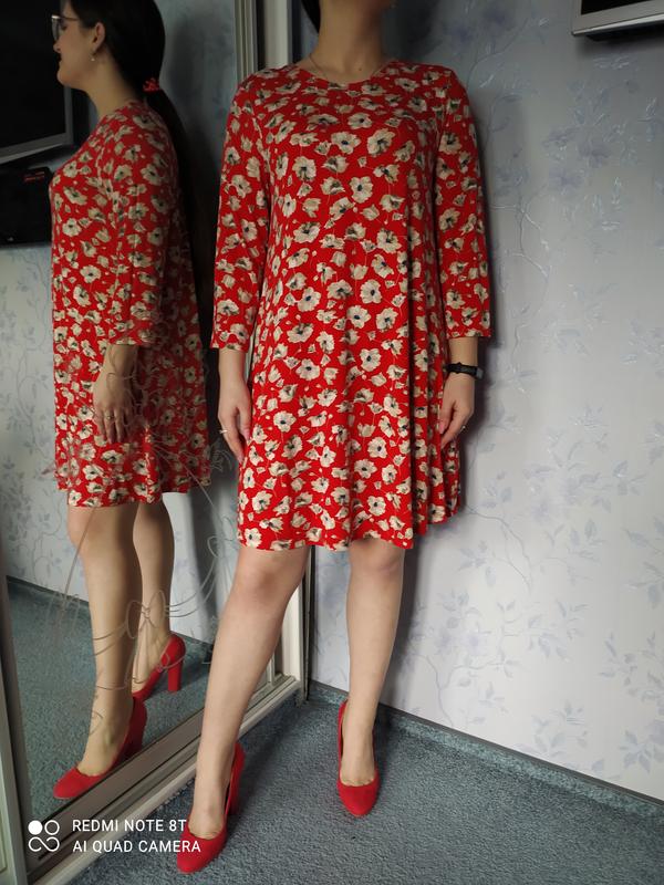 Дуже красиве яскраве трикотажна сукня вільного крою в квітковий принт. Плечі - 41см ПОГ - 51см ПОБІДИ - 59см Рукав-48 см Довжина сукні - 92см