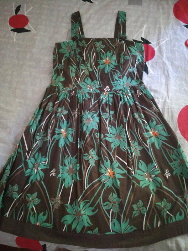 Заміри :довжина з бретелями 95см, ПОГ 44см, ПІТ 42см. На спинці гумка. На тоненький підкладці.