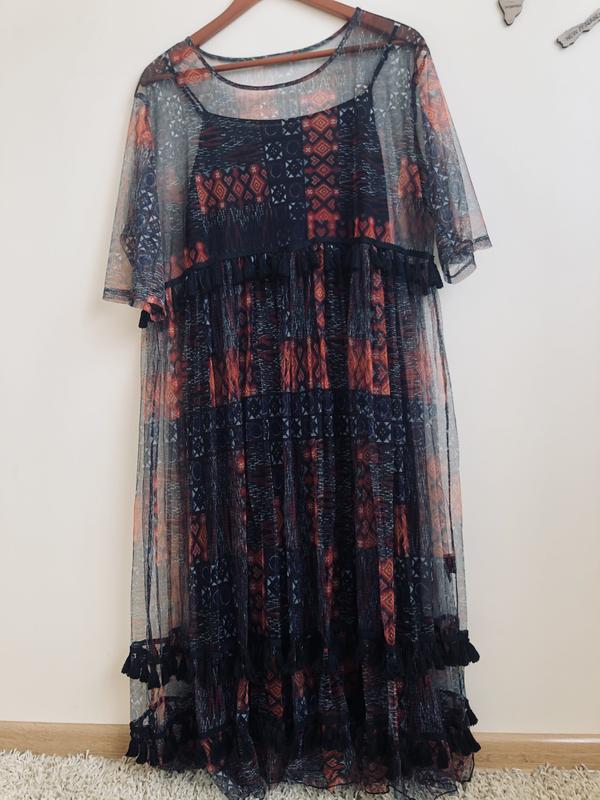Плаття сетка, знизу комбінація Ідеальний стан Без нюансів і дефектів Є відеогляд Довжина накидки: 113см, ширина 56см, рукав 32см, між плечовими швами 46см