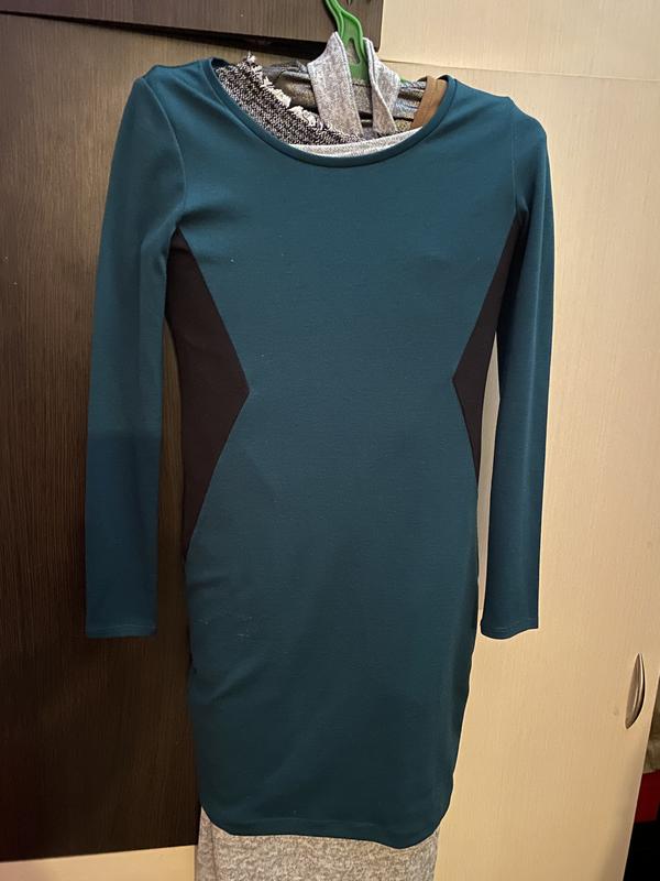 Колір зелений, фото спотворює, глибокий зелений колір Сідає по фігурі, чорні вставки з боків роблять талію візуально вже Розмір на бірці С, але підходить і на М-Л, добре тягнеться, носила на Л Дефектів немає