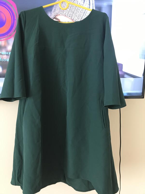 Легке плаття - трапеція розмір 50.Стан ідеальний,одягалося один раз.По бокам є карманчики.Заміри: по ОГ 54, талія та бедра вільне,довжина по спинці 91, довжина рукава від плеча 40.