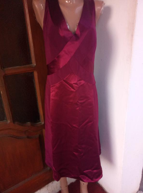 Сукня бордове з атласними вставками приталеного силуету чудово сідає на фігурі