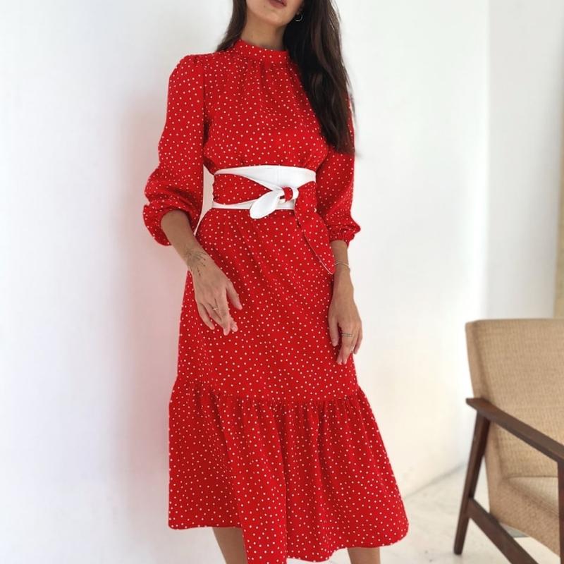 #Плаття Розміри: 42, 44, 46, 48 Артикул: 654\1066 Матеріал: софт принт квіти Колір: горошок на червоному, горошок на синьому, горошок на бежевому Рукав на резинці, застібка ззаду на гудзик. Пояс двосторонній з еко-шкіри Фото реал