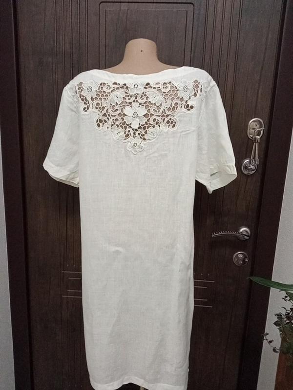 Лляне плаття з ажурною вставкою ПОГ-51 см ПОТ-49см ПОБІДИ-53см Довжина -92см рукава-25см плечі-41м склад тканини на фото /всі фото зроблені на маникене 46 розміру / Додаткові фото якщо треба - будуть 😜💕
