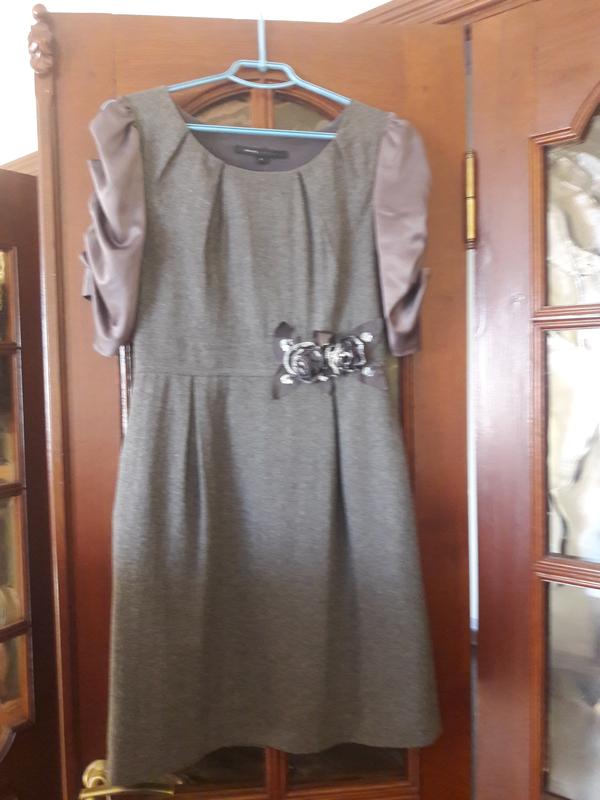 Плаття на підкладці розміру 4 ( 38/ 40). Бренд Mark Jacobs. Цает сірий. ПОГ 45см, ПІТ 38 см, ПОБІДИ 55 см, довжина до талії 33 см, втачной пояс 5,5 см, довжина 55 див. 70 % вовна, 30 % поліестер.