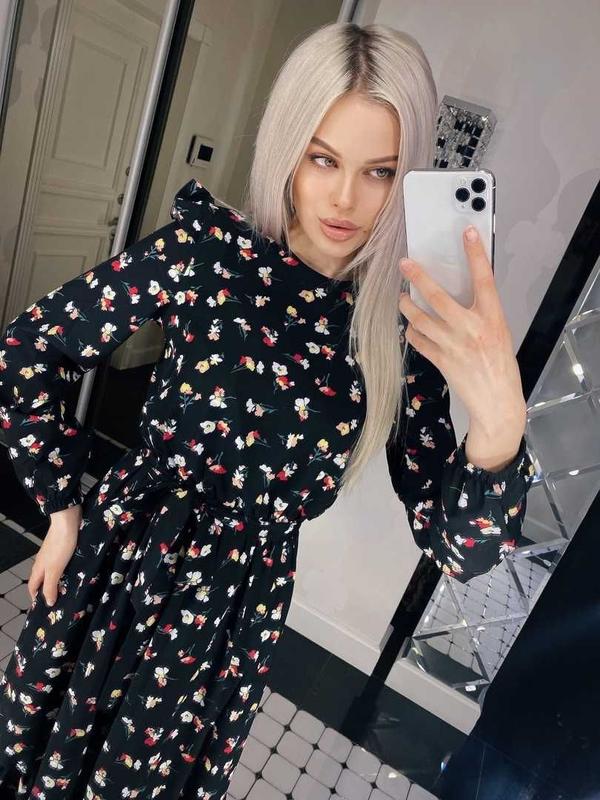 238 Артикул 691B87B5 Платье #201\/3 Размеры:42-44,46-48 Ткань: Шелковый софт Цвет: черный с цветочками Талия на резинке Пояс в комплекте Замеры полуобхват Платье свободного фасона #201\/3 Размер 42\/44 ОГ 44,5см ОТ-32-42см ОБ идет на расширение Длина 118см Длина рукава 60см Размер 46\/48 Ог 49см От 34-44см Об идет на расширение Длина 121см Длина рукава 61см