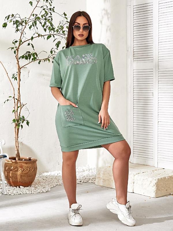 Сукня батал арт. bic. Тканина: турецька двухнитка Колір: чорний, оливка, індиго джинс Аплікація в каменях Розмір: стандарт 48-54, Довжина 90см
