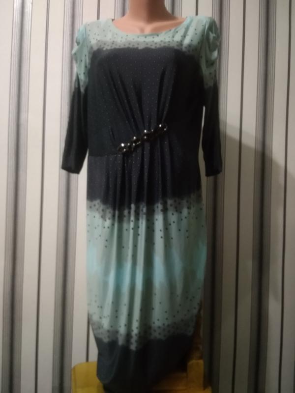 Нарядное,нежное , лёгкое и приятное на ощупь и на теле. Итальянское. Ткань-тонкая,но не просвечивает, спереди косой крой даёт возможность интересной складке на груди.Украшено цепочкой, рукава, с лёгкой драпировкой.Хорошо сядет на 50-52 размер,красиво смотрится,если не прилегает плотно.