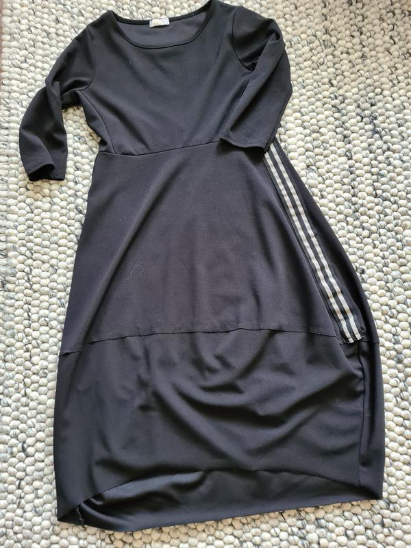 сукня з тонкого трикотажу з лампасами і асиметричним подолом