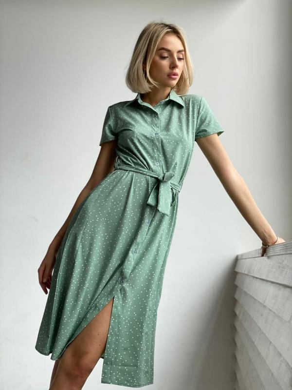 2021 collection —————— ▪️Женское платье « Софт горох» Ткань - софт Размер - 42-44; 44-46 Цвет - чёрный красный олива лило Особенности - платье ниже колен, с воротничком, на пуговицах , под поясок