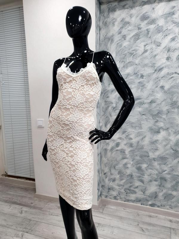 Шикарне вечірнє мереживну сукню приємного ніжного кольору, мереживо білого кольору, підкладка бежева. Добре підкреслює фігуру, відмінно підійде як для свята так і для прогулянок👌👍 Заміри: Ог 87 - 92 64 - 68 Про 90 - 96 Довжина 99 см (від центру грудей)