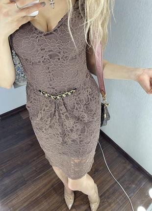 🌸Красиве гіпюрову плаття на підкладці кавового кольору в ідеальному стані 😍 Розмір 38 Довжина виробу 96 см