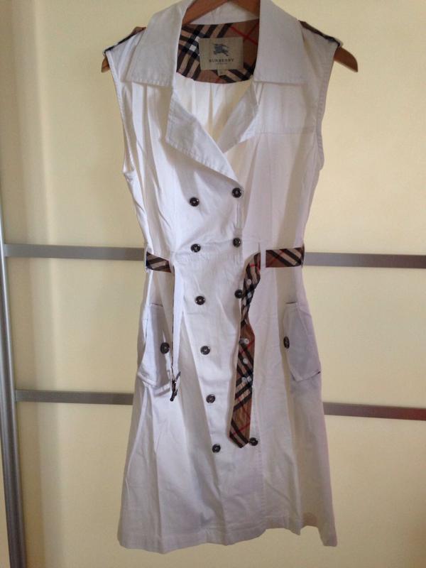 Платье Burberry London белого цвета с поясом и двумя карманами на пуговицах. Платье шикарно сидит и подчеркивает фигуру, пояс корректирует талию. Размер XL, по длинне 99 см.{ по колено}, по плечам 44 см., обьем груди 94 см., талия 88 см., объём бёдер 108-112 см.Платье немного тянется. Платье новое, без этикетки.