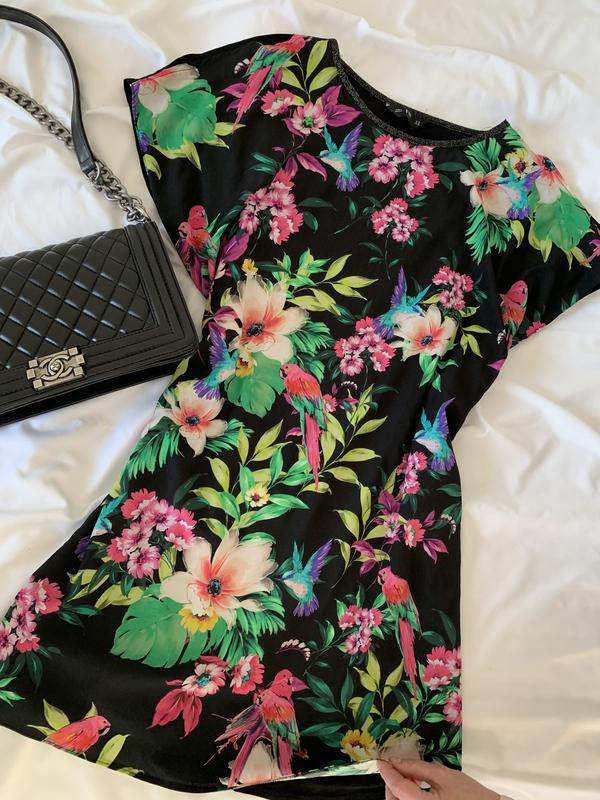 Шикарне яскраве плаття. Перед квітковий принт, спинка чорний трикотаж. Квітковий поясок. Виглядає просто 💣