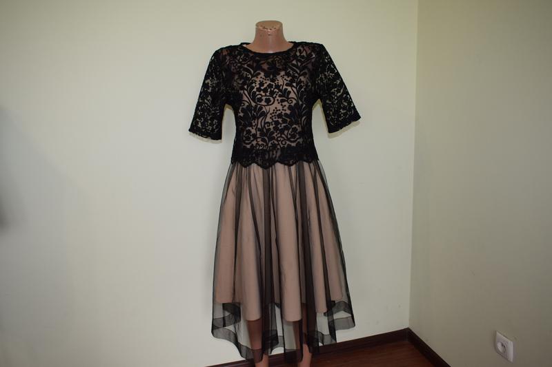 Плаття оригінально пошито. Виробник Турція. Колір чорний та бежевий Тканина трошки тягнеться. шикарне пошиття. Красиве пошиття, низ фатін. ошатнішою плаття. верх накидка кружевна окружність грудей 86 окружність талії:72 окружність стегон:140+- довжина виробу:110+-
