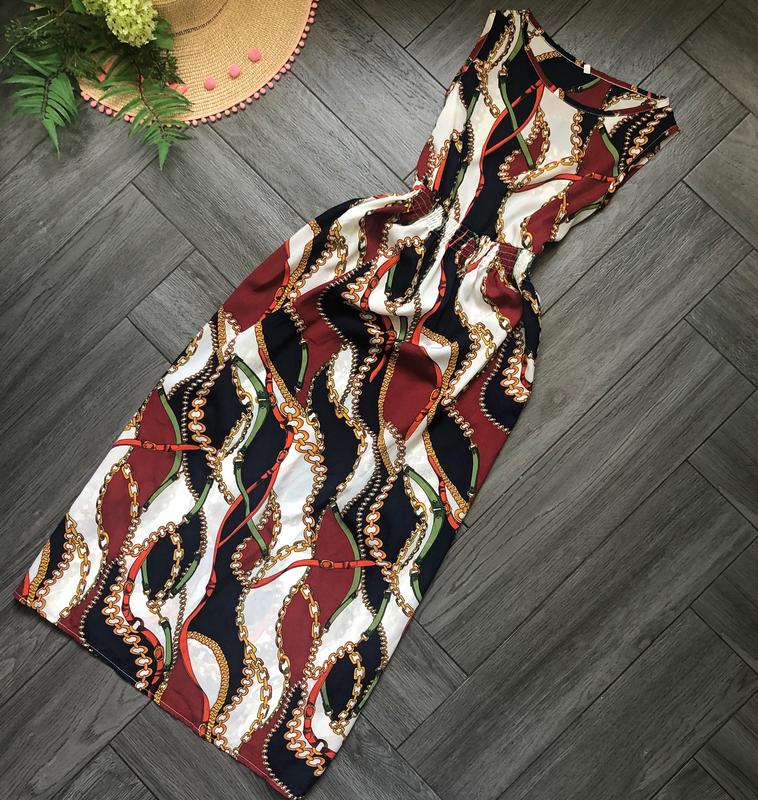 Платье миди цепи принт состояние отличное,полиэстер р с - длина 121 - пОг 46-47 - пОТ 33-48 рез - пОб любые ФОТО НА ТЕЛЕ НЕТ