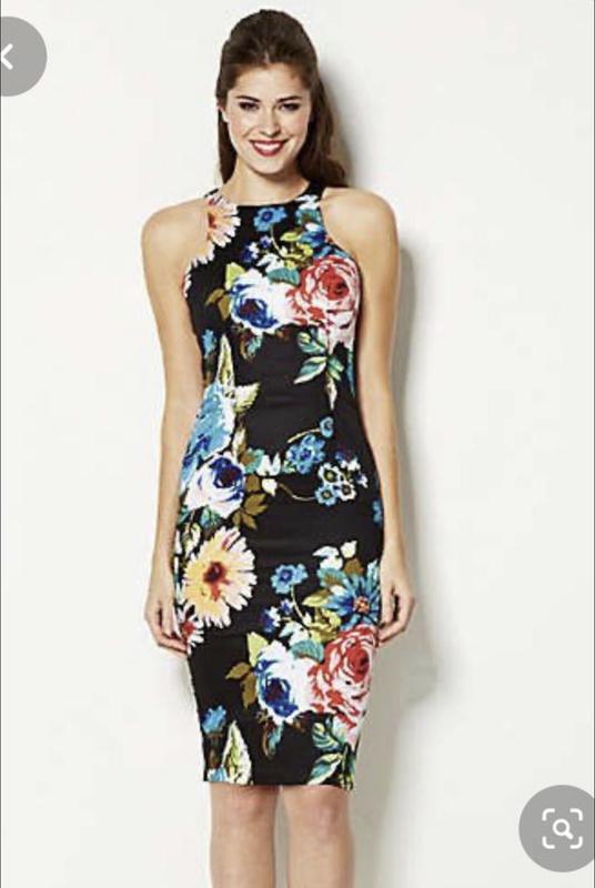 Платье очень женственное, на все случаи жизни. Красиво садится по фигуре. Актуальный в сезоне крупный цветочный принт. Сзади шлица и длинный потайной замок. Длина 100 см Пог 44 Пот 35-36 Поб 46 Котон и 5% эластан. Немного тянется. Пойдет на грудь 88-92 см и бедра 90-96 см Состояние новой вещи