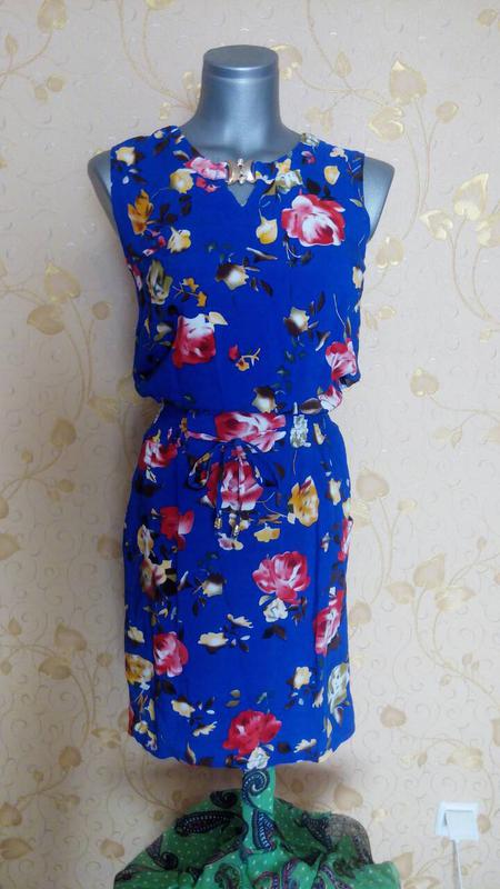 Ткань штапель, платье не носилось. Было только выстирана в ручной стирке.по бокам есть карманы. Размер 42-44.