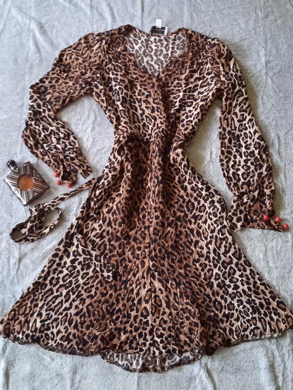 Красиве, плаття леопардового кольору з поясом і плечима-ліхтариками.Збоку блискавка і кілька кнопочок. Є нюанс - протягнута нитка на одному з ліхтариків( останнє фото) дефект практично непомітний.