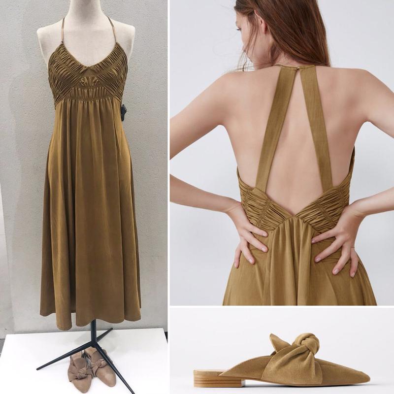 Літній сарафан гірчичного кольору з відливом. На стрічковій бретелі. Ззаду на зав'язках. Ліф-гумка. Вільного крою. Середньої щільності. Тягнеться. Заміри: Довжина виробу 131 див. ПОГ 34 див. ПІТ 34 див. Склад: 84% поліестер, 16% еластан. Оплата на карту приват банку і доставка новою поштою.