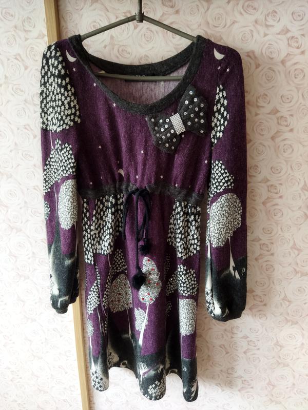 Розмір S-M ( 44-46) Дуже красиве ніжне плаття з оригінальним принтом. Натуральна вовна. Стан нового,без дефектів.
