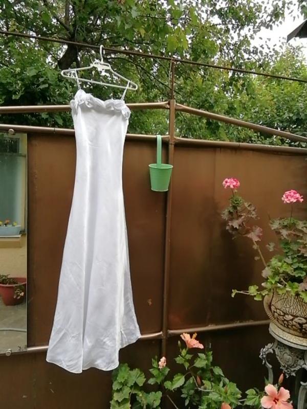 Французское очень красивое платье, на любое торжество(выпускной, свадьба или просто нужно быть парадной) очень сдержанно, красиво ложится, не просвечивается, красиво декорирована грудб розами. Разм. 36-38 грудь до 93 см, бедра до 105,платье кроено по косой, поэтому даю такие замеры. Платье новое. Рост до 1,70.