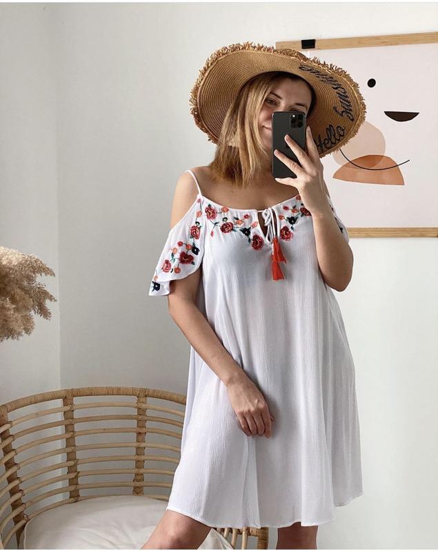 Біле платтячко в квітковий принт вільного крою