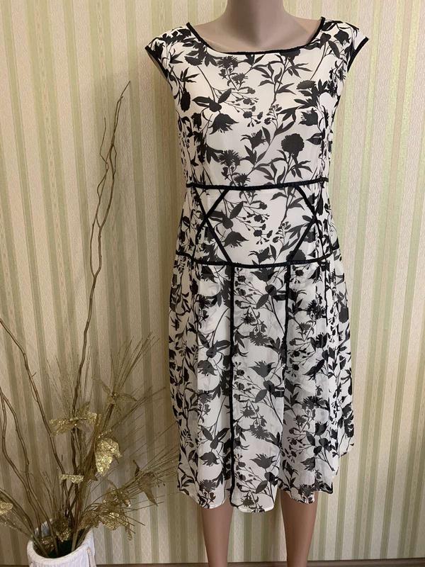 Стан ідеальний Чорно біле Верх шовк, Підкладка-поліестер Застібається на блискавку збоку Легке Повітряне Плечі спущені Пог 45 Піт 40 Побіди 48 Довжина 98