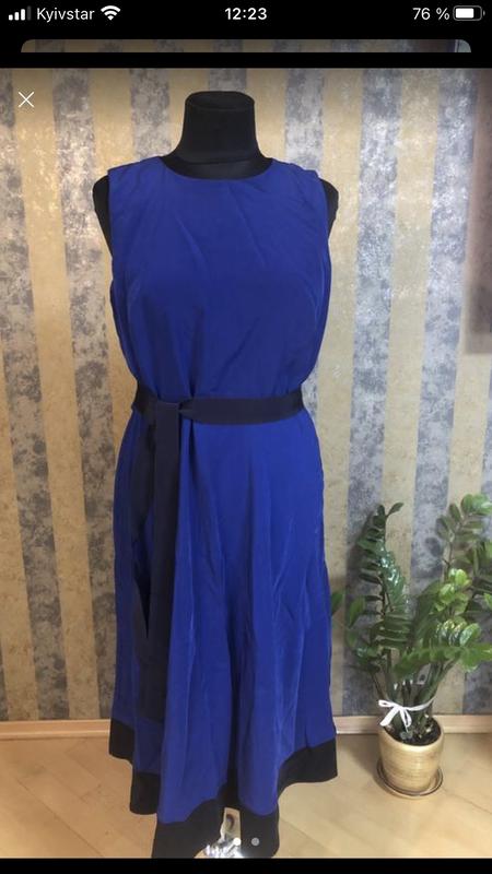 Сукня міді, колір синій з чорним Довжина 113см Побіди вільно Піт 43см Пог 52см