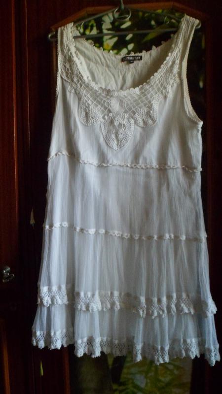 сукню на розмір с. Виглядає дуже романтично і жіночно з недоліків - є кілька цяток в районі пахв і ззаду ледь помітну цятку на комірі - останнє фото. виводити не пробувала додаткові заміри не надаю.