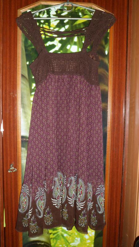 Платье очень красиво и элегантно нежно. Не успела, какой марки, потому что срезала бирку. Куплено в Голландии. сверху вязаные элементы, снизу шифон. подкладка. новое. дополнительные замеры и фото не надеваю.