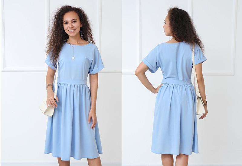 Якщо хочете бути в тренді і увійти в літній сезон на стилі, рекомендуємо придивитися до нашої новинки! Однотонне плаття міді з короткими рукавами – безпрограшний варіант для літнього сезону. Така модель виглядає однаково красиво як з модельним взуттям на підборах, так і зі спортивним взуттям на низькому ходу. Літня сукня вільного крою з відрізною талією прикрасить будь-яку жіночу фігуру. Особливо вигідно плаття буде виглядати на дівчатах, яким потрібно приховати зайвий обсяг на стегнах. Стильна довжина міді (до середини ікри) додасть образу жіночності і легкої загадковості. Сукня має круглий неглибокий виріз горловини і короткі рукави. Для зручності, в одному з бічних швів є потайна блискавка. Для виготовлення цього виробу був обраний легкий, але практичний матеріал. Софт має безліч переваг, серед яких можна виділити: - приємну гладеньку текстуру; - міцність і зносостійкість; - високу повітре проникність; - невибагливість у догляді. Жіноче плаття з короткими рукавами доступне до замовлення у пяти різних відтінках і шести розмірах до 52-го. Щоб правильно визначитися з розміром, скористайтесь розмірною сіткою виробника.