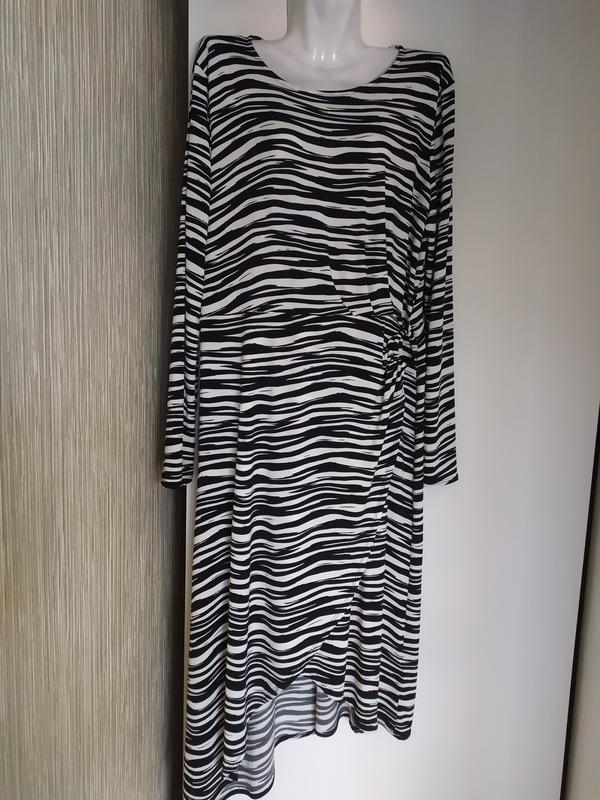 стильне, цікаве,якісне плаття в ідеальному стані.тканина м'яка і еластична.силует з відрізною талією і разновеликим подолом(дуже красиво виглядає), довгим рукавом і ефектним вирізом на спині. пог --56 ( і тягнеться), пот --45(і тягнеться), по плечах--43, довжина рукава --65 , довжина сукні -- 113--124(різновеликих поділ).
