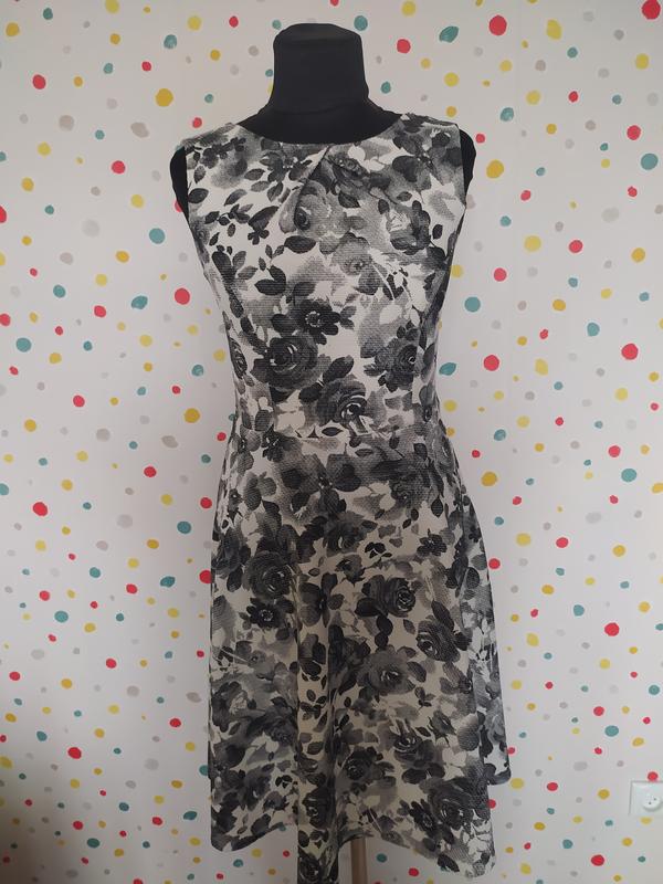 Красивое платье, приталенное, с застежкой на замочек в боковом шве, отрезное по талии, к низу - слегка расклешенное. Цвета - сдержанные. Полуобхват груди - 42см, полуобхват талии - 38см, полуобхват бедер - до 60см, длина -96см.