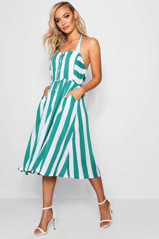 Міді сарафанчик від boohoo. Розмір 8. Дивіться виміри. Напівобхват грудей 38 см, довжина 110 див. Стан - зауважень немає.