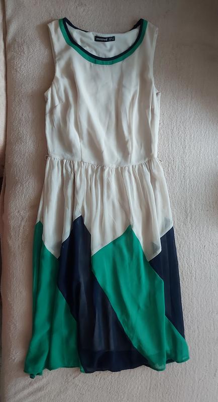 Гарне плаття на підкладі, колір кремовий з синім і зеленим , заміри на фото. стан нового