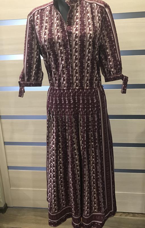 Сукня вінтаж в дуже хорошому стані, 100% поліестер довжина виробу 120 см, довжина рукава 32 см, ПОГ 48 см, ПОБІДИ 48-50 см, ПОТ 38 см / на поясі резиночка тягнеться до 44 см/ ширина плеча 40 див.