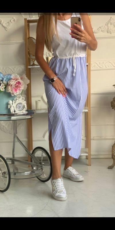Верх трикотаж, низ не тягнеться, зав'язка-шнурок. Довжина 115, ширина 43. ( фото 2 завмер в області стегон)
