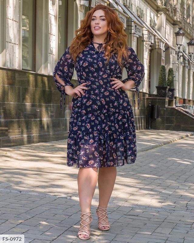 Легке платтячко міді. Розмір:50,52,54,56-58. Тканина:шифон на трикотажній підкладці. Колір:синій,молочний. 24.07