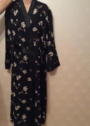 Жіночий халат для дому, чорний з білим, окантований атласом + атласний пояс чорного кольору, підійде на розмір М