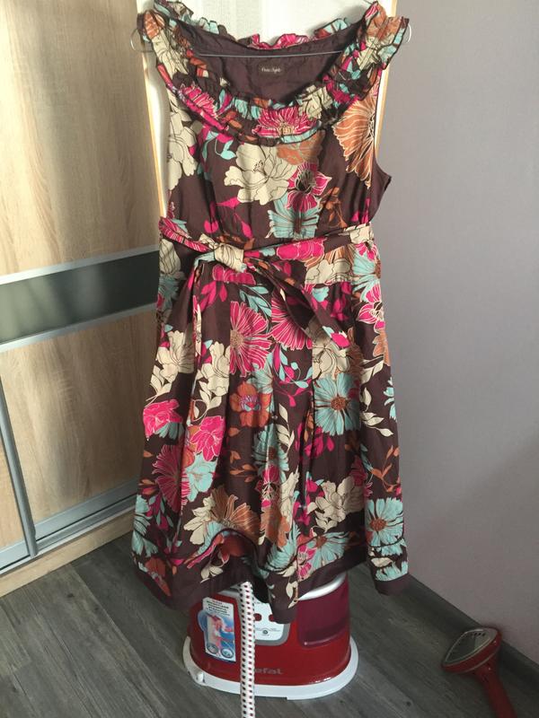 Яркое летнее платье британского бренда Phase Eight. Хлопок 100%. Бирка размера отсутствует, лучше ориентироваться по замерам. Длина 105 от плеча, подмышки 45, пот 39, поб 51. Сбоку застежка молния, на талии пристрочен широкий длинный пояс. Платье легкое, натуральное, яркое.