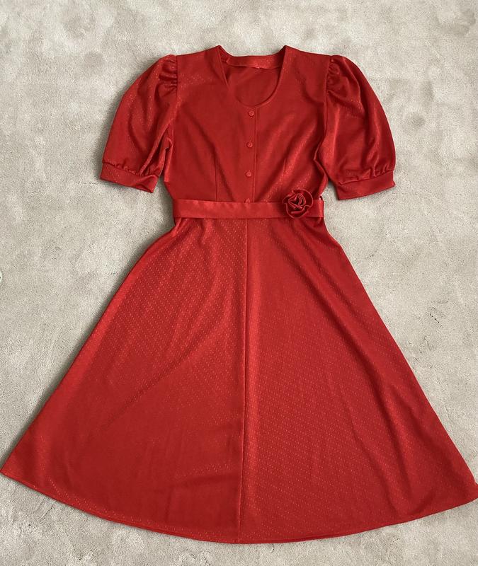 Ткань стрейчевая, но не тянется в области талии. ПОТ - 36 см, тянется до 39 см. Пояс снимается. Цвет кирпично-коралловый.