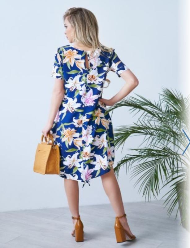 Абсолютно новое платье трапеция. Цвет - синий. Стиль - повседневный (casual). Размер - м-л (свободный крой). Длина рукава - с короткими рукавами. Длина - миди с цветочным принтом. Материал - полиэстер + хлопок. Силуэт - асимметричный, свободный. Состав - 59% полиэстер + 21% эластан + 20% хлопок.