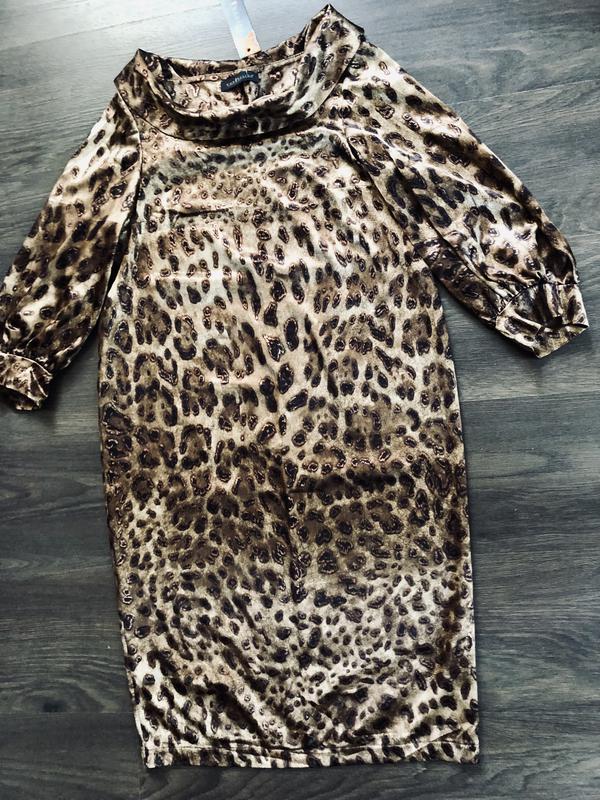 Плаття атласне вільного крою. Рукав 3/4.Склад 95% поліестер,5% еластан. Розмір 44-46.