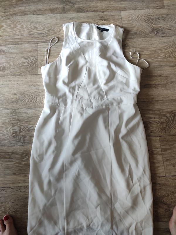 Біле плаття футляр,на грудях сіточка і низ сіточка оздоблений,на розмір 50