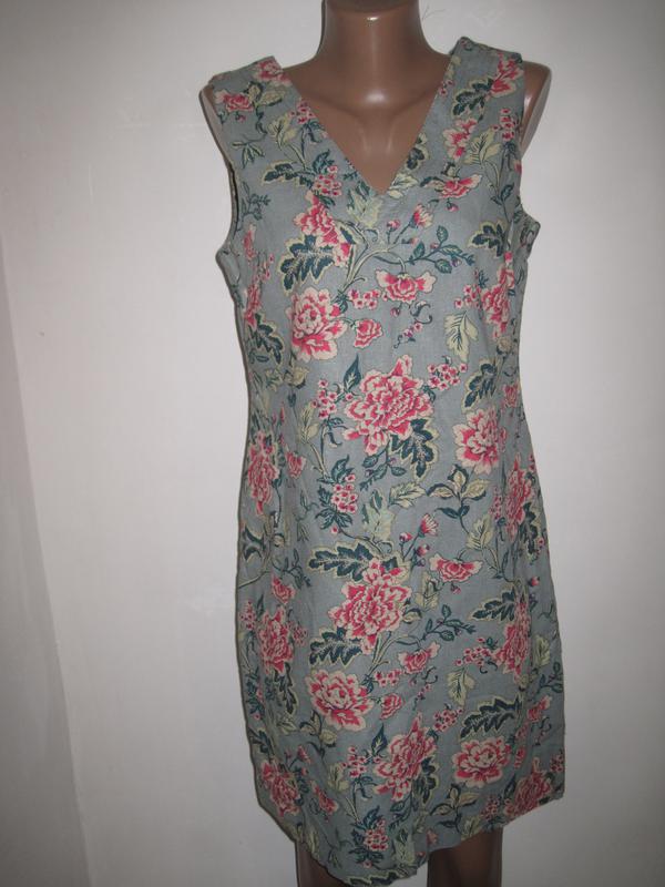 Льняное платье цветочный принт Peacocks р-р10,58%лен, 42%вискоза, подкладка полиэстер, ПОГ48, ПОТ44, ПОБ50, длина 90, идеальное состояние, 270грн