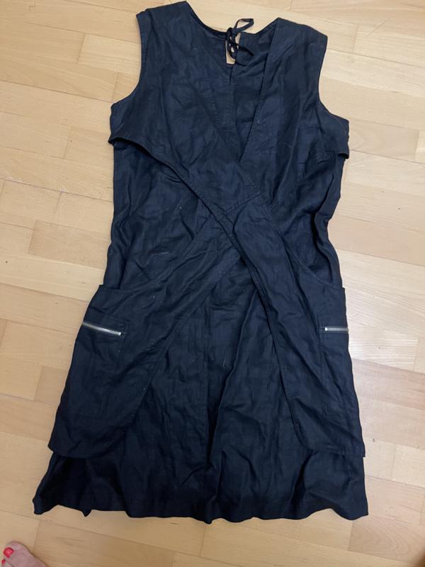 Льняное чёрное платье 42/44 размера интересного кроя с декоративными планками на спинке и впереди. Бренд B.Lake. ПОГ 50 см, ПОТ 51 см, ПОБ 62 см, длина 100 см. Дефектов нет, состояние нового, но без этикетки.