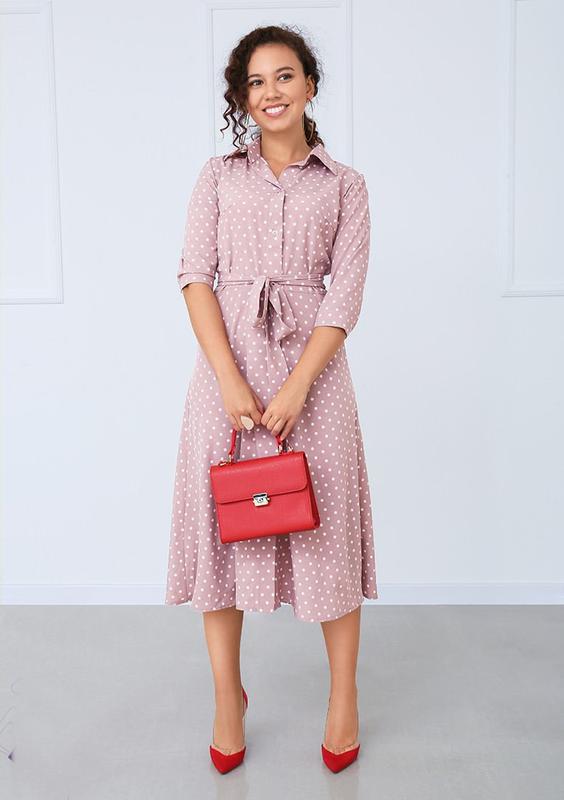 💥Плаття міді в горошок 💥 ✔️Ціна 442 грн ⠀ ✔️Матеріал: софт; ⠀ ✔️Розміри: 42 , 44, 46, 48; ⠀ ✔️Заміри: довжина по спинці: 115 см, довжина рукава: 41 см; ⠀ ✔️Особливості: ґудзики по всій довжині і на рукавах; ⠀ ✔️Кольори: чорний, червоний, пудровий, бежевий;